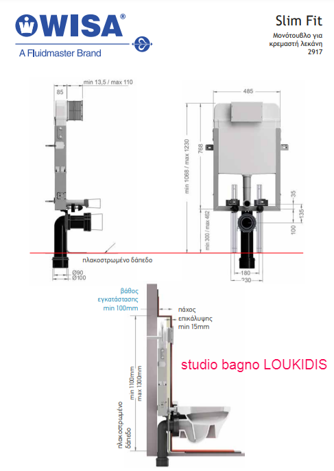 ΚΑΖΑΝΑΚΙ ΕΝΤΟΙΧΙΖΟΜΕΝΟ SLIM-FIT WISA ΜΟΝΟΤΟΥΒΛΟ για κρεμαστη λεκανη