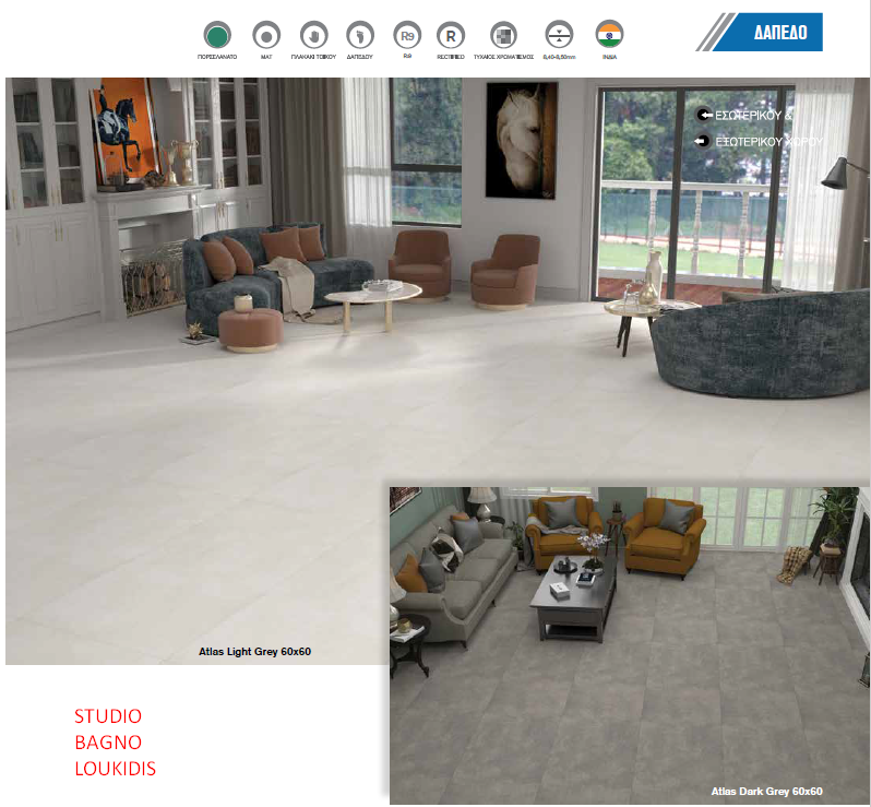 ΠΛΑΚΑΚΙ 60X60 ΔΑΠΕΔΟΥ-ΜΠΑΝΙΟΥ ATLAS LIGHT GREY