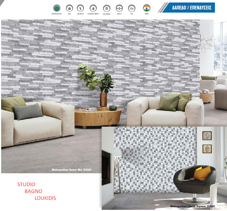 ΠΛΑΚΑΚΙ 30Χ60 ΜΠΑΝΙΟΥ METROPOLITAN LIGHT GREY
