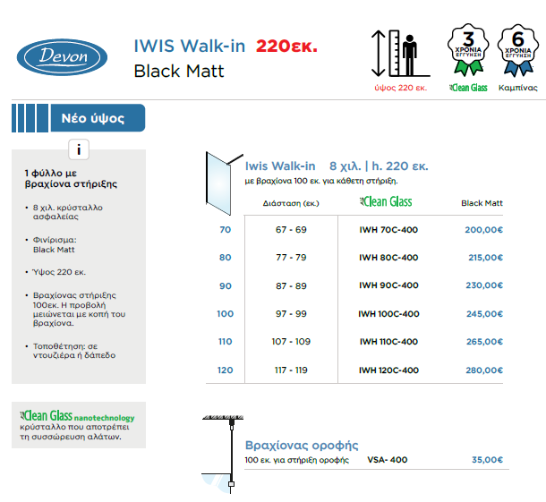 ΔΙΑΧΩΡΙΣΤΙΚΟ 70,80,90,100,110,120CM Χ 2.20Y IWIS WALK-IN BLACK MATT