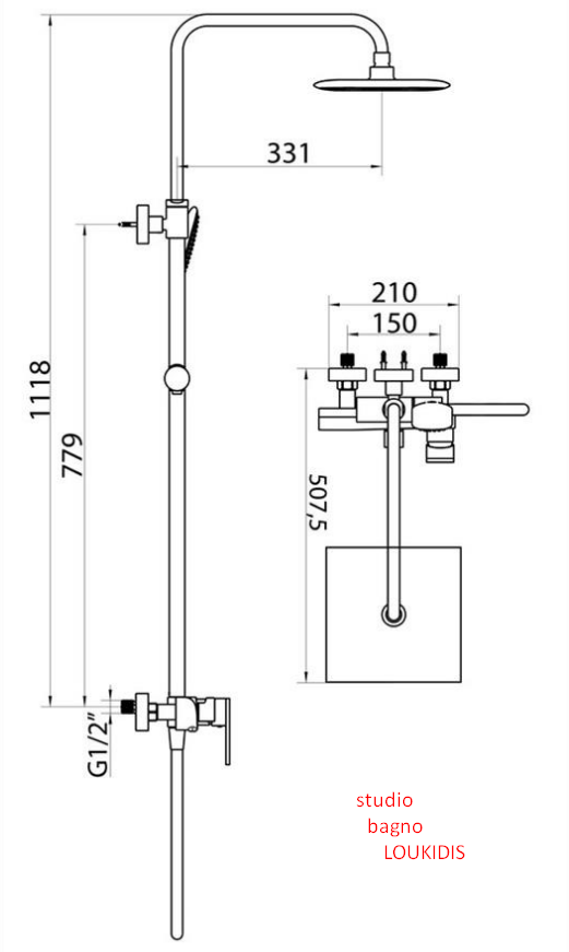 ΜΠΑΤΑΡΙΑ ΝΤΟΥΖΙΕΡΑΣ ΜΕ ΚΟΛΩΝΑ ΝΤΟΥΖ 3 ΕΞΟΔΩΝ MUSE-ART BLACK MATT
