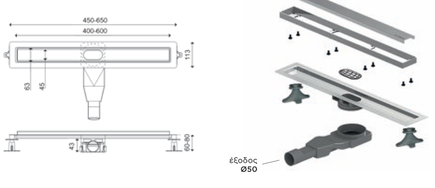 ΚΑΝΑΛΙ ΔΑΠΕΔΟΥ-ΣΙΦΩΝΙ ΝΤΟΥZ 60CM BLACK BRUSHED 2 ΟΨΕΩΝ